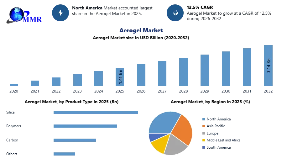 ROCKVILLE , MD, UNITED STATES, April 16, 2026 /EINPresswire.com/ -- Global Aerogel Market size was valued at USD 1.41 billion in 2025 and is projected to grow at a CAGR of 12.5% from 2026 to 2032, reaching nearly USD 3.14 billion by the end of the forecast period.