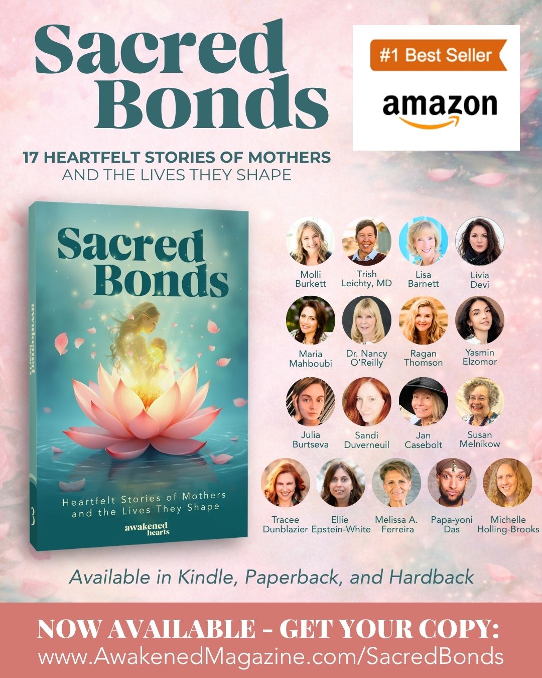 "Sacred Bonds: Heartfelt Stories of Mothers and the Lives They Shape" is available for purchase on Amazon in Kindle ($1.99), paperback, and hardback editions. For more information, visit www.awakenedmagazine.com/sacredbonds.